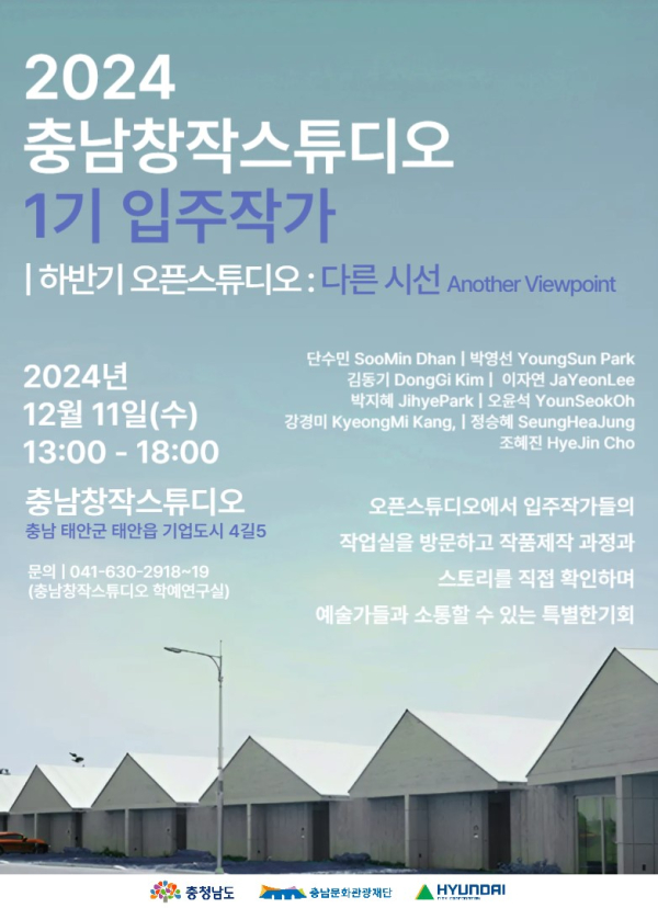 [충청뉴스 권상재 기자] 충청남도와 충남문화관광재단은 오는 11일 충남창작스튜디오 전시동 및 커뮤니티동에서 하반기 오픈스튜디오를 개최한다고 밝혔다.
