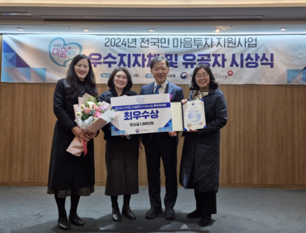 시는 전 국민 마음투자 지원사업을 수행한 전국 229개 시군구를 대상으로 진행된 평가에서, 서비스 신청률과 서비스 운영, 예산 집행 등에 탁월한 성과를 인정받아 최우수 지자체에 선정됐다고 15일 밝혔다.