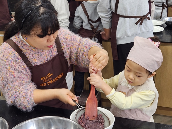 [충청뉴스 최형순 기자] 세종 전통문화체험관에서 15일에 ‘2024 작은설, 동지팥티’ 행사가 개최되었다. 다가오는 동짓날을 맞이하여 팥죽을 직접 만들어먹는 행사로 선착순 접수신청을 받아 빠르게 조기마감되어, 행사 당일 100여명의 많은 가족단위 방문객들이 모두 참여하여 성황리에 진행되었다.