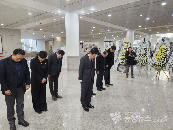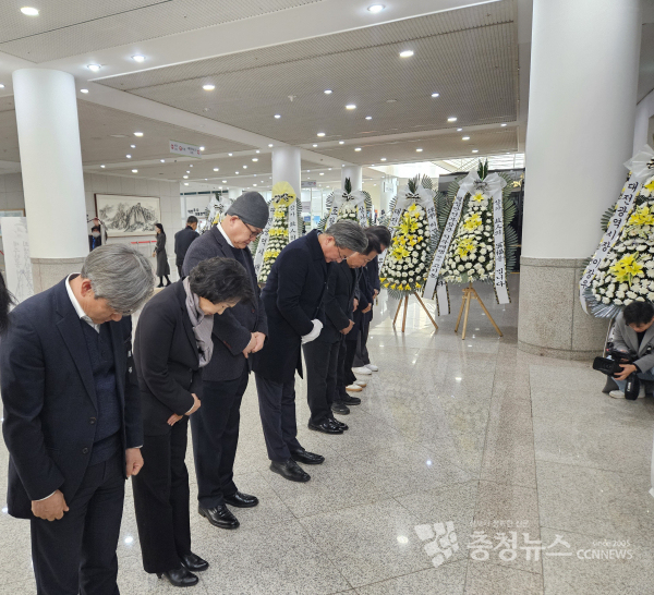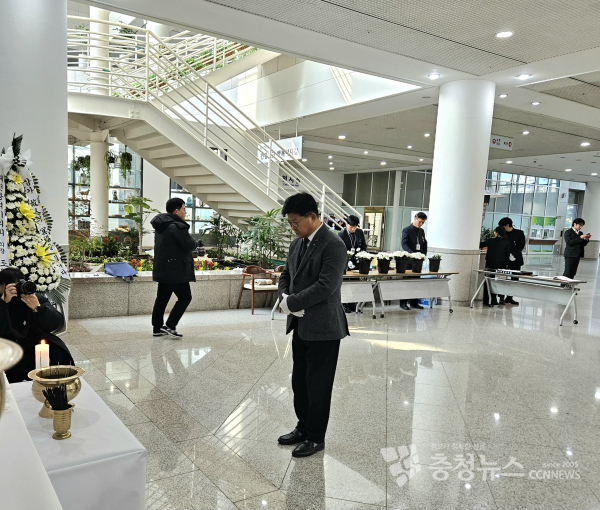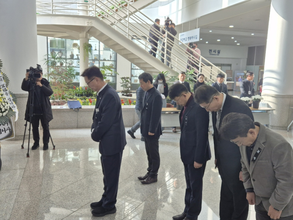 [충청뉴스 박영환 기자] 30일 대전시청 1층에 마련된 '제주항공 여객기 사고 희생자 합동분향소'에 대전시 기초자치단체장들의 조문 행렬이 이어졌다.