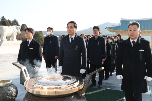 대전 동구는 2일 2025년 을사년 새해를 맞아 박희조 동구청장을 비롯한 본청 5급 이상 간부 공무원들이 대전 국립현충원을 방문해 순국선열과 호국영령에 참배했다고 밝혔다.