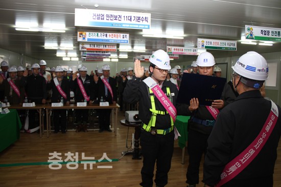 (주)금성백조주택이 시공하는 도안신도시 7블록 예미지 신축공사 현장이 한국산업안전보건공단으로부터 무재해 1배 인증을 받아 12일, 무재해 준공을 위한 결의대회를 가졌다.