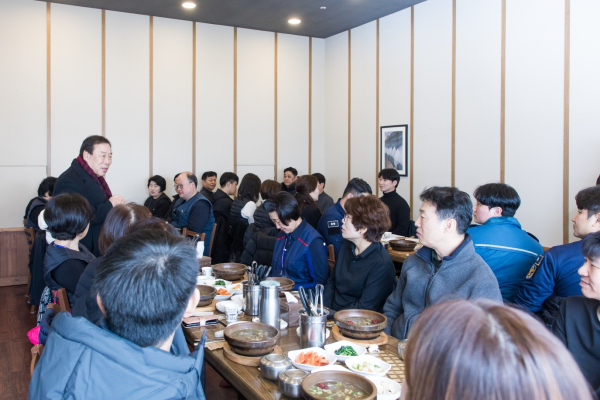 [충청뉴스 최형순 기자] 최민호 세종시장이 8일 보람동 소재 식당에서 시청 현업근로자 40여 명과 간담회를 갖고, 새해 덕담을 나누며 직원들의 노고를 격려했다.