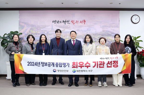 [충청뉴스 박영환 기자] 대전 서구는 행정안전부 주관 2024년 정보공개 종합평가에서 작년에 이어 올해도 최우수 기관에 선정되며 5년 연속 최우수 지자체의 영예를 안았다.