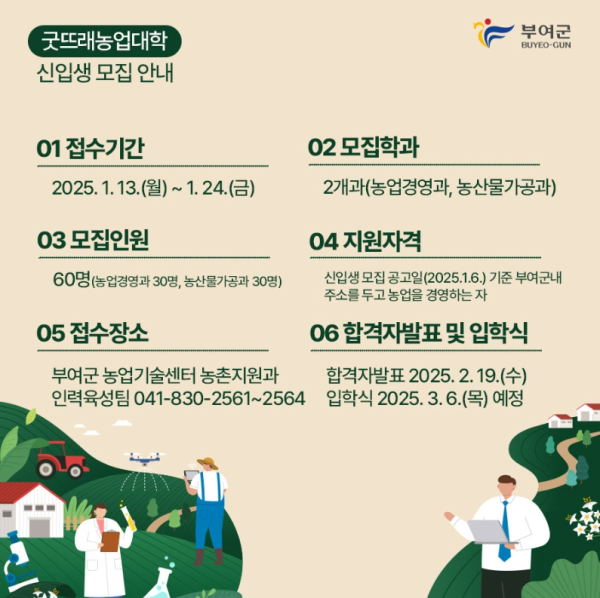 부여군, 2025학년도 굿뜨래농업대학 신입생 모집