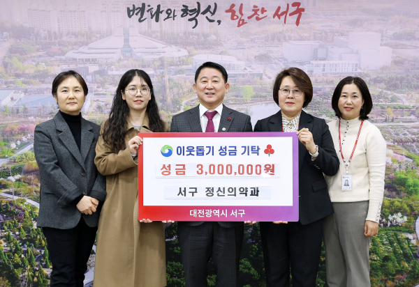 이번 기탁은 정신의약과 직원들이 지역사회의 어려운 이웃을 돕기 위한 따뜻한 나눔의 하나로, 기탁된 성금은 대전사회복지공동모금회를 통해 서구 저소득층 주민들에게 전달될 예정이다.