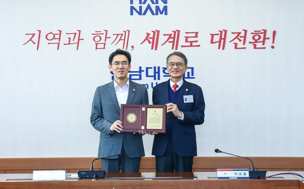 한남대 감사패 전달식 [충청뉴스 이성현 기자] 한남대는 21일 오후 2시 본관 2층 대회의실에서 장호종 대전시 경제과학부시장에게 캠퍼스혁신파크선도사업, 글로컬30 예비지정 등 대전시와 함께 대학발전에 기여한 공로로 감사패 전달식을 가졌다. 저작권자 © 충청뉴스 무단전재 및 재배포 금지 이성현 기자 다른기사 보기 기사가 마음에 드셨나요? 충청뉴스 좋은 기사 후원하기 1,000원 3,000원 5,000원 10,000원 30,000원 50,000원 직접입력 비회원 약관동의하기 ※ 소중한 후원금은 더 좋은 기사를 만드는데 쓰겠습니다.