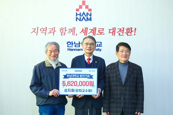 성지회는 한남대 은퇴교수들의 모임으로 한남대 발전을 위한 학교발전을 위한 다양한 활동을 해오고 있으며, 지난해 1000만원 후원금 전달 이후 올해도 은퇴 교수들의 뜻을 모았다.