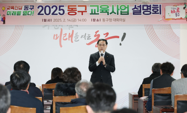 [충청뉴스 박영환 기자] 대전 동구는 14일 구청 대회의실에서 관내 초‧중‧고 학교장, 운영위원장 등 70여 명이 참석한 가운데, ‘2025년 교육사업 설명회’를 성황리에 개최했다고 밝혔다.