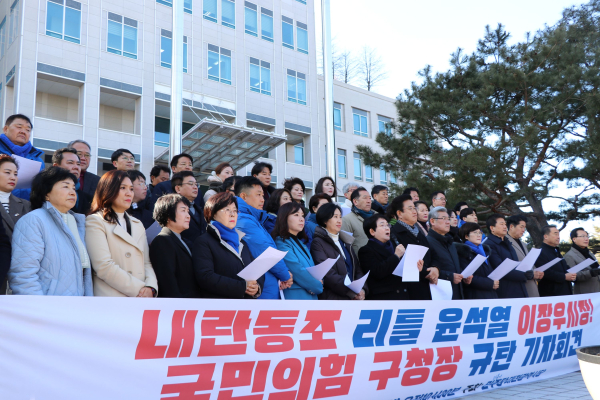 [충청뉴스 김용우 기자] 더불어민주당 대전시당이 지난 주말 대전서 열린 윤석열 탄핵 반대 집회에 참석한 국민의힘 소속 시장·구청장을 규탄했다.