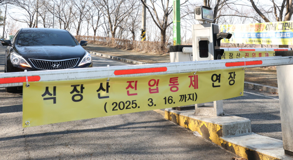 식장산 진입로는 겨울철 강설로 인한 결빙 구간이 많아, 방문객의 안전을 위해 매년 선제적으로 겨울철 차량 통행을 제한하고 있으며, 이번 차량 통제 조치는 지난해 12월 16일부터 시작됐다.