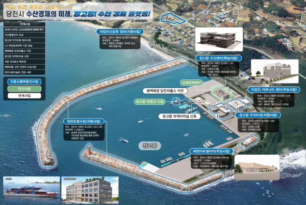 당진 장고항 일원에는 민간사업인 140억 원 규모의 유람선 사업과 연계해 ▲장고한 수산센터 조성 139억 원 ▲해양 아트갤러리 16억 원 ▲어업인 커뮤니티센터 20억 원 ▲장고항 주차타워 조성 55억 원 등 총 300억 원이 투입된다.