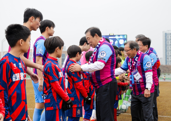 최민호 시장은 축사를 통해 “세종사랑 원년의 해에 새롭게 출범한 세종SA축구단의 첫 홈경기를 진심으로 축하한다”며 “세종SA축구단이 발전을 통해 전국에서 좋은 팀으로 성장하길 바란다”고 격려했다.