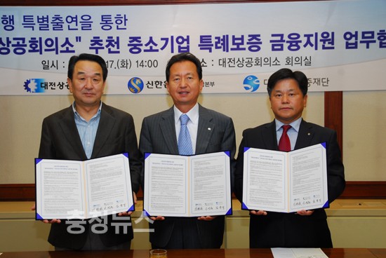 이에 앞서, 지난해 7월 17일 상의회관에서 대전상공회의소는 대전신용보증재단(이사장 김윤식) 및 신한은행 대전충남본부(본부장 손기용)와 ‘중소기업 특례보증 금융지원 업무협약’을 체결해, 신용도가 우수하거나 성장가능성이 높은 지역 중소기업에게 업체당 최대 1억 원까지 자금 지원을 약속한 바 있다.