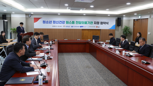 도는 12일 도청 중회의실에서 단국대병원, 순천향대 천안병원, 홍성의료원, 태안군보건의료원과 청소년 정신건강 원스톱 전담의료기관 지정·협약을 추진했다.
