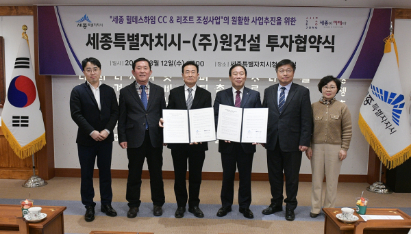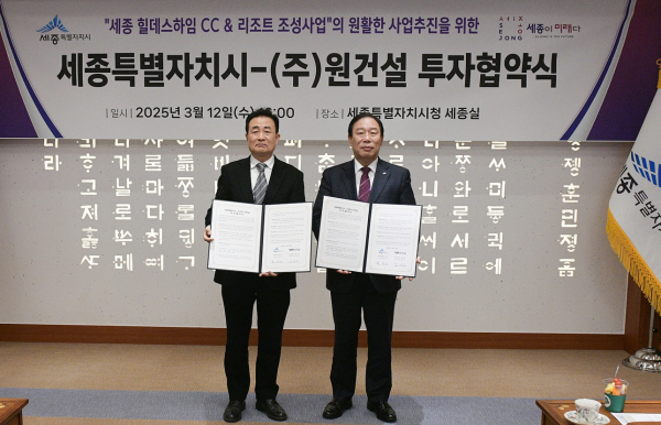 [충청뉴스 최형순 기자] 세종특별자치시(시장 최민호)는 12일 시청 세종실에서 ㈜원건설(회장 김민호)과 '세종 힐데스하임CC & 리조트 조성'을 위한 양해각서(MOU)를 체결했다.