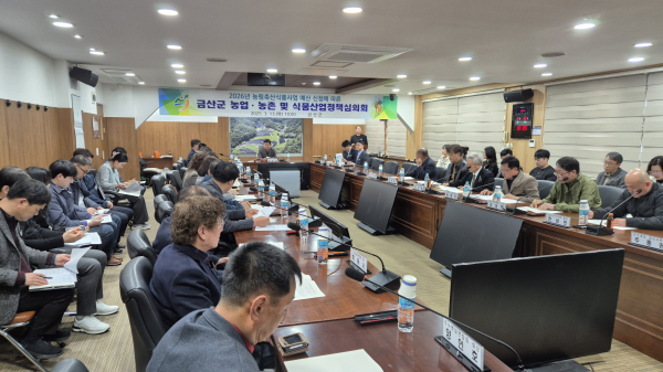[충청뉴스 금산 = 조홍기 기자] 금산군 지난 13일 군청 상황실에서 농업‧농촌 및 식품산업 정책심의위원회 회의를 개최하고 내년 농림 예산 566억 원을 신청하기로 했다.