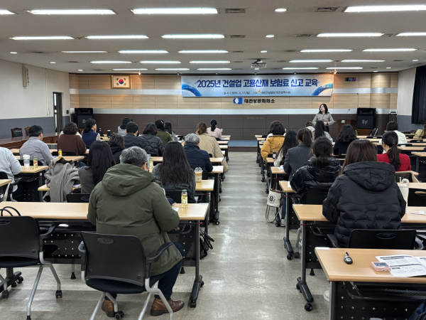 [충청뉴스 김용우 기자] 대한건설협회 대전시회(회장 최문규)는 17일 대전상공회의소에서 회원사 대상으로 2025년 건설업 고용·산재 보험료 신고 교육을 개최했다.