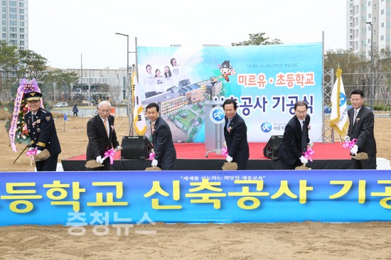 세종시교육청(교육감 신정균)은 17일 오후 한솔동 일원에서 미르유·초등학교 신축공사 기공식을 갖고 첫마을 인구유입에 따른 초과학생수용 문제 해소와 쾌적한 교육환경 조성을 위한 첫 걸음을 뗐다.