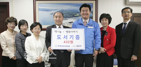 한국SGI로부터…책나눔.행복더하기 도서 기증식 한국SGI대전방면(방면장 강병돈)은 25일 대덕구청 구민의 사랑방에서 지역 새마을문고 활성화 및 독서문화 증진을 위해 신간 도서 432권을 기증하는 책나눔․행복더하기 도서 기증식을 가졌다. ▲ 책나눔 행복더하기 도서 기증식 저작권자 © 충청뉴스 무단전재 및 재배포 금지 최온유 기자 다른기사 보기 기사가 마음에 드셨나요? 충청뉴스 좋은 기사 후원하기 1,000원 3,000원 5,000원 10,000원 30,000원 50,000원 직접입력 비회원 약관동의하기 ※ 소중한 후원금은 더 좋은 기사를 만드는데 쓰겠습니다.