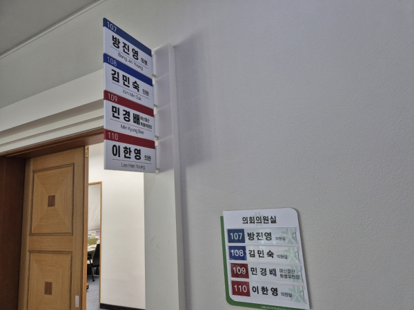 오후에는 시의회 내 유일한 민주당 소속 김민숙 의원(비례)의 옆 방인 107호에 짐을 풀고 시의회 기자실을 찾아 당선 소감을 밝혔다.