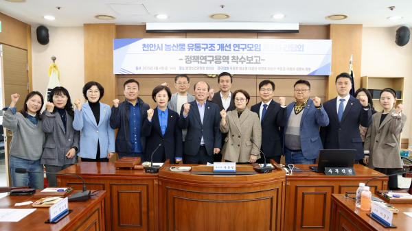[충청뉴스 박동혁 기자] 충남 천안시의회 ‘천안시 농산물 유통구조 개선 연구모임’이 농산물 유통정책 전략 마련에 나섰다.