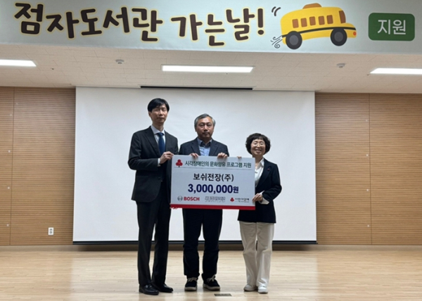 이날 행사에는 보쉬전장 사랑행복더하기 봉사단 지대현 회장, 김철 총무, 이준범 세종점자도서관 관장, 이희정 세종모금회 사무처장 등이 참석한 가운데 보쉬전장(주)의 300만원 성금 전달식이 진행되었다.