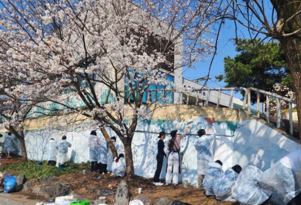 [충청뉴스 최형순 기자] 세종특별자치시 부강면(면장 최의헌)은 12일, 부강면 행정복지센터에서 홍익대학교 세종캠퍼스 미술 동아리 ‘Draw-All’과 협력하여 청사 벽화 그리기 봉사활동을 성공적으로 진행했다.