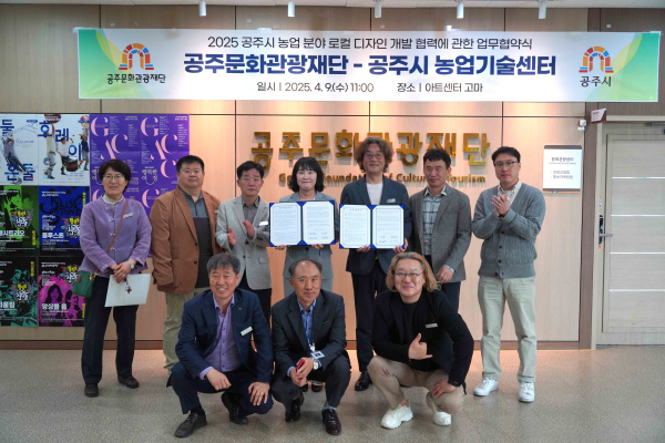 [충청뉴스 공주 = 조홍기 기자] 공주문화관광재단(대표이사 김지광)은 지난 9일 아트센터고마에서 공주시 농업기술센터와 ‘공주 농업 분야 로컬 디자인 개발 협력에 관한 업무협약’을 체결했다.