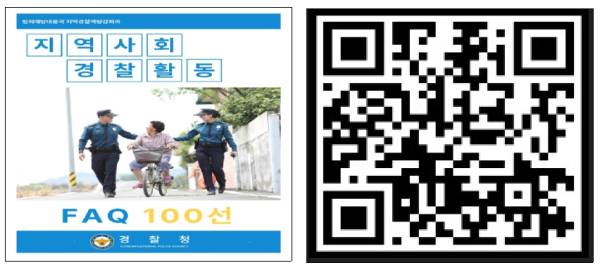 [충청뉴스 최형순 기자] 세종북부경찰서 범죄예방계 경위 정백규는 "경찰청에서 제작한 '지역사회 경찰활동 FAQ 100선'을 QR코드 형태로 제작하여 시민들이 손쉽게 접근하고 정보를 얻을 수 있도록 배포한다"고 14일 밝혔다.
