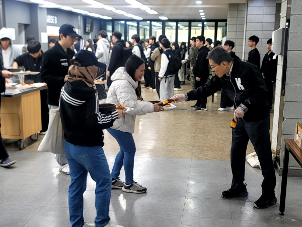 이날 유길상 한기대 총장은 학생들에게 간식을 직접 배식하며 “힘내서 시험 잘 보세요”라고 응원의 메시지를 전했다.