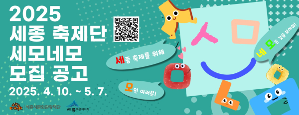 [충청뉴스 최형순 기자] 세종시문화관광재단(대표이사 박영국)이 2025 세종축제를 현장에서 함께 만들어갈 전문 축제 인력 양성을 위한 ‘2025 세종축제단 세모네모’ 참가자를 5월 7일(화)까지 전국에서 모집한다.