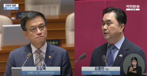 [충청뉴스 최형순 기자] 김종민 의원(국회 산업통상자원중소벤처기업위원회)은 15일 국회 경제 분야 대정부질문에서 최상목 부총리 겸 기획재정부 장관에게 경제 현안에 대한 정부의 책임 있는 자세를 촉구하며 날카로운 질문을 이어갔다.