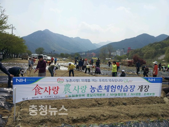 농협충남지역본부(본부장 김병문)는 4일 계룡산 인근 공주시 반포면 온천리(박정자삼거리)에서 주말농장 분양가정 및 충남대학교 농업경제학과 ‘농촌사랑봉사단’ 등 300여명이 참석한 가운데 주말농장 개장식을 갖고 본격적인 농장운영에 들어갔다.