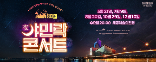 세종시문화관광재단은 “야민락 콘서트”를 통해 시민들이 일상 속에서 더욱 풍요로운 문화생활을 누리고, 세종시의 밤이 다채로운 예술의 향기로 가득 채워지기를 기대한다.
