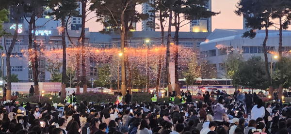 저녁 7시 30분부터 약 2시간 동안 은은하게 타오른 1만여 개의 낙화봉은 밤하늘을 아름다운 불꽃으로 수놓았으며, 방문객들은 타닥타닥 조용히 타는 불꽃을 바라보며 액운을 쫓고 행복과 안녕을 기원하는 낙화의 의미를 되새기는 시간을 가졌다.