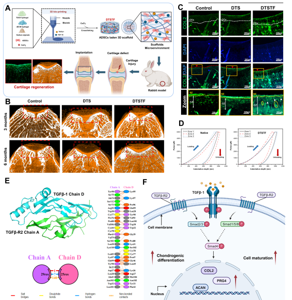 연구팀은 탈세포화된 돼지 해면골 유래 세포외기질(dECM)에 셀룰로오스 나노섬유(TOCN)와 알지네이트를 조합해 생체활성 단백질 기반 바이오잉크를 만들었다. 여기에 성장인자(TGF-β1, FGF-18)와 지방유래 줄기세포(ADSCs)를 탑재한 연골 치료소재를 개발했다.