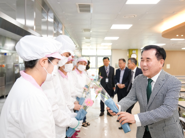 또한 교육청은 급식관계자의 노고에 대한 감사와 격려를 위해 교육감 등 간부공무원이 급식 관계자 모두에게 작은 꽃다발을 증정하며 고마운 마음을 전했다.