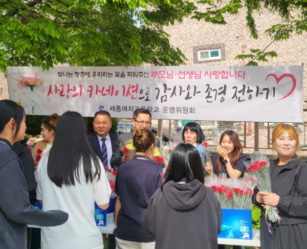 이번 행사는 세종여고 운영위원회(위원장 유용철)의 주관으로 마련되었으며, 운영위원들은 학생들의 하교 시간에 맞춰 학교 정문 앞에서 직접 카네이션을 전달하며 부모님께 감사의 마음을 전하도록 격려했다.