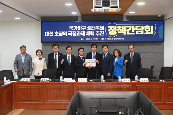 [충청뉴스 조홍기 기자] 5월 7일 국회에서 '국가하구 생태복원'을 차기 대선 국정과제로 반영하기 위한 민·관·정 정책간담회가 열렸다. 이번 간담회는 국가하구생태복원 전국회의가 주관하고, 이학영 국회부의장을 비롯해 이개호·신정훈·박수현·황명선·서왕진 의원 등 국회의원들과 김영록 전남도지사, 박정현 부여군수 등 지방자치단체장, 허재영 전 국가물관리위원장 등 민간 전문가들이 참여해 심도 있는 논의를 이어갔다.