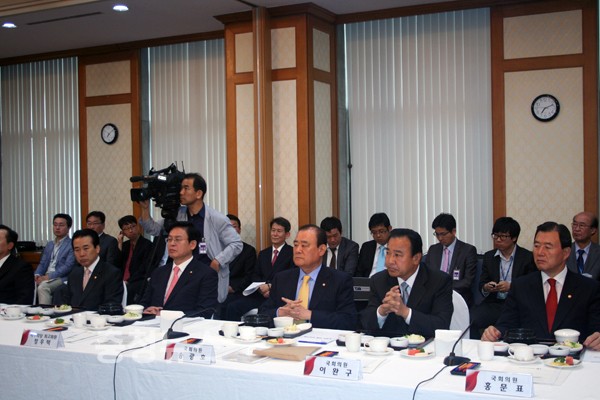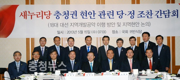 새누리당 충청권 국회의원 모임은 이날 국회 귀빈식당에서 미래창조과학부 최문기 장관, 안전행정부 유정복 장관, 문화체육관광부 유진룡 장관, 국토교통부 서승환 장관 등 4개 주요부처 장·차관들을 참석시킨 가운데 첫 당·정 조찬 간담회를 열었다.