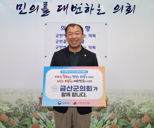 [충청뉴스 금산 = 조홍기 기자] 금산군의회 김기윤 의장이 인구감소와 고령화 문제에 대한 사회적 인식을 제고하기 위하여 ‘인구문제 인식개선 릴레이 캠페인’에 참여했다.
