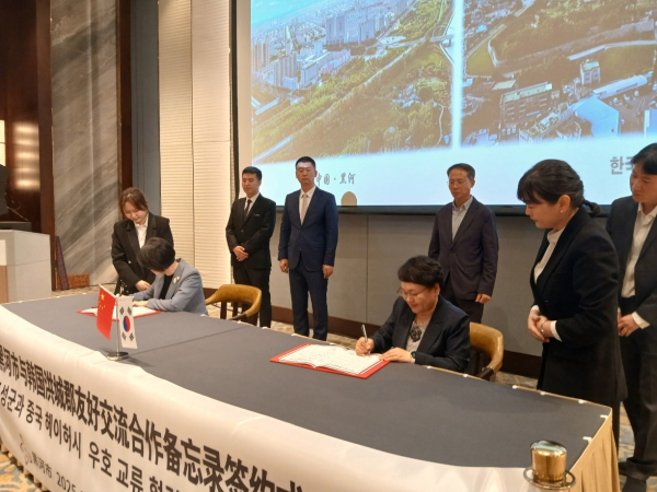 중국 헤이허시와 우호교류 협력 각서 체결 모습