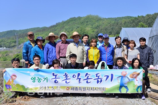 세종특별자치시의회(의장 유환준) 의원 및 직원 등 40여명은 21일 전동면 청송리 마을에서 농번기 지역 주민들의 일손을 덜어주고 현지 농민들의 애로사항과 건의사항을 청취하는 시간을 가졌다.