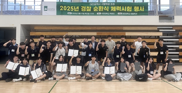 [충청뉴스 이성현 기자] 대전대학교 경찰학과는 대전 지역 19개 고등학교에서 선발된 학생 35명을 대상으로 ‘2026년 경찰 순환식 체력시험 체험행사’를 개최했다고 23일 밝혔다.