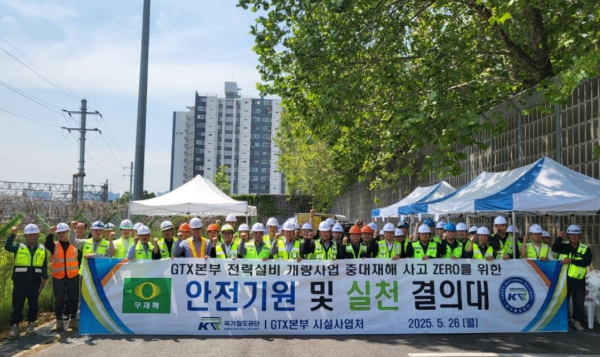 [충청뉴스 최형순 기자] 국가철도공단 GTX본부가 26일 「2025년 전철전력설비 개량사업 안전결의대회」를 개최하며 전철전력설비 개량 현장의 중대재해 예방과 안전의식 함양에 대한 강력한 의지를 다졌다.