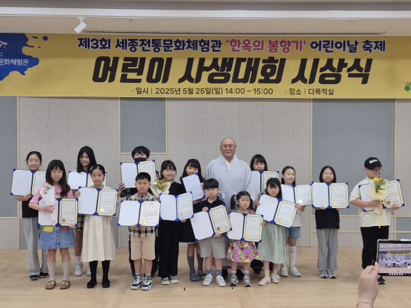 [충청뉴스 최형순 기자] 세종 전통문화체험관은 25일 체험관 내 다목적실에서 제3회 어린이날 기념 사생대회 "한옥의 봄향기" 시상식을 개최했다.
