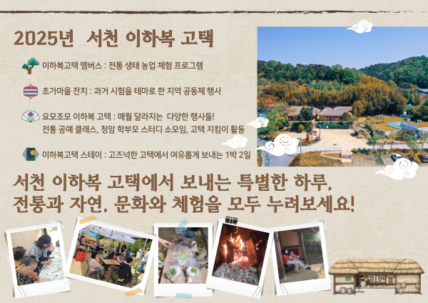 한편, 해당 프로그램은 사전 예약제로 운영되며, 자세한 사항은 이하복고택 공식 SNS(인스타그램, 밴드 등) 또는 청암문화재단(041-951-3610)을 통해 확인할 수 있다.