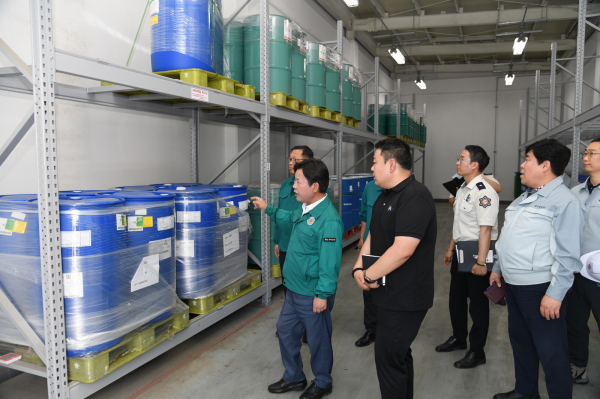 [충청뉴스 부여 = 조홍기 기자] 부여군(군수 박정현)은 지난 12일 초촌면 소재 유해화학물질 및 위험물을 취급하는 주요 제조시설인 태극제약을 대상으로 2025년 집중안전점검을 실시했다.