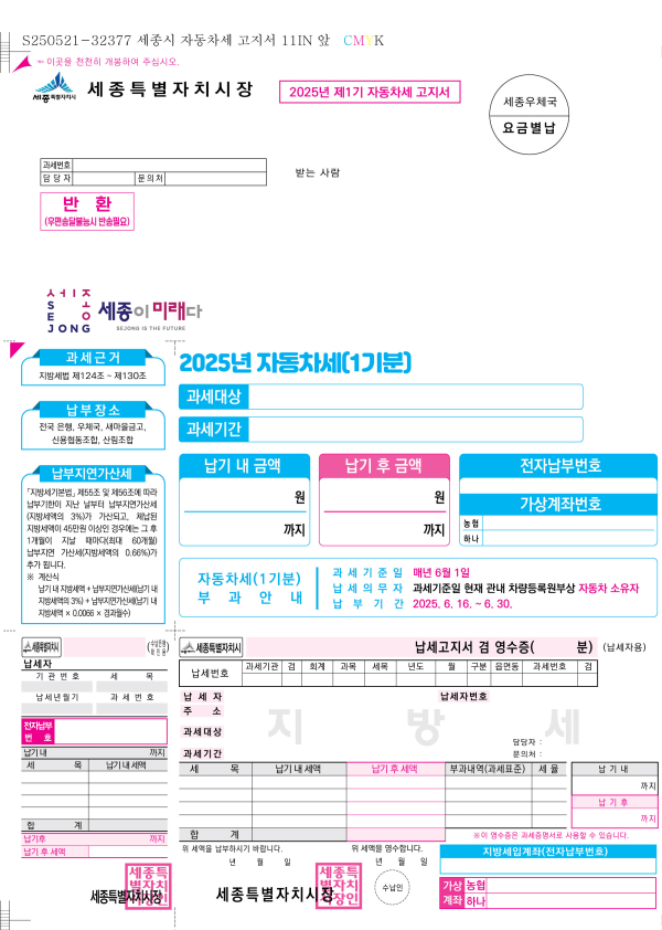 [충청뉴스 최형순 기자] 세종특별자치시가 고령자와 저시력자 등 정보 취약계층의 편리한 정보 접근을 위해 제1기분 자동차세 고지서를 '큰 글씨 고지서'로 개선하여 발송했다.